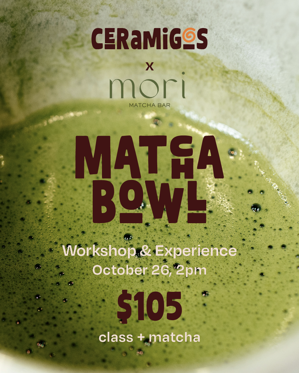 Ceramigos and Mori Matcha Bar are collaborating to bring you this wonderful Matcha Experience. Sip delicious matcha concoctions and learn more about Mori while our clay instructors will teach you how to sculpt your perfect matcha bowl out of clay!